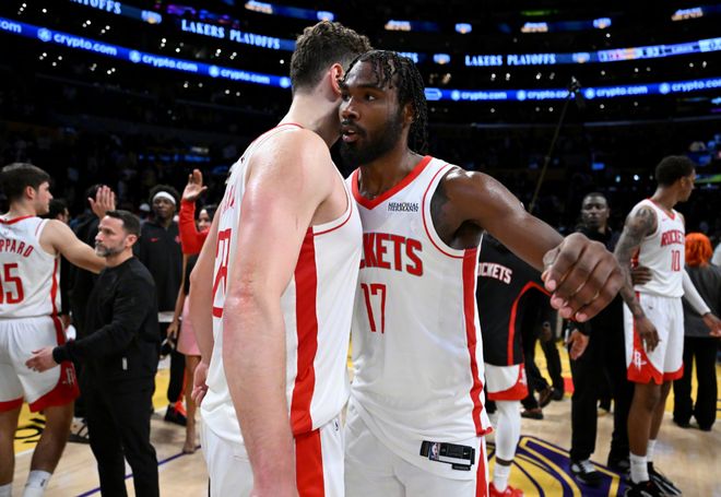 缺拉开空间的三分投手,没办法,因为火箭位置就这么固定的,阿门和申京占了两席,谢泼德有防守短板,只剩小贾了。也缺能够分担杜兰特持球的接应点!有杜兰特的火箭,不像是一支完整的球队。但没有杜兰特的火箭,似乎什么都不缺。就以最近三场为例,火箭球权占有率在19%以上的有五人,湖人没有防守侧重点,阿门能控一下,霍勒迪能串联,申京也能在高位接应传导。而杜兰特的位置被伊森填充之后,火箭的快攻属性拉满,在提速后,火箭的体能优势,包括移动对抗能力让湖人非常难受。就举一个例子,湖人对不上伊森这一点。